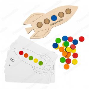 Гра "Космічна ракета" - пазл для дітей від 1+ років, чимало порадує всіх любителів космосу і космічних подорожей. Тут ви знайдете 8 карток з ракетами, а також по п'ять гурток з основних кольорів (червоні, помаранчеві, сині, жовті, зелені). Дитина граючи в гру вчить рахунок до п'яти, а так само запам'ятовує основні кольори в процесі гри за картками.