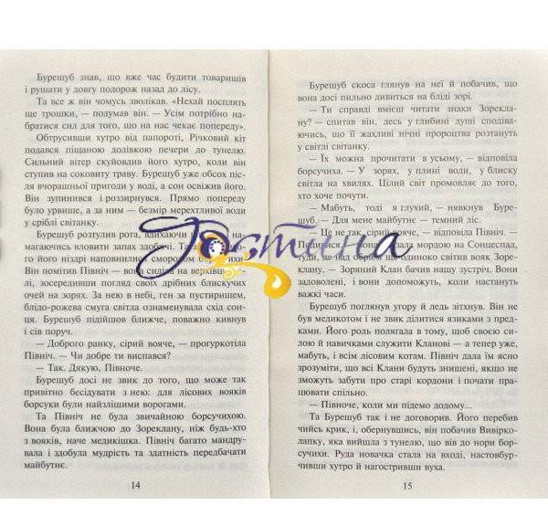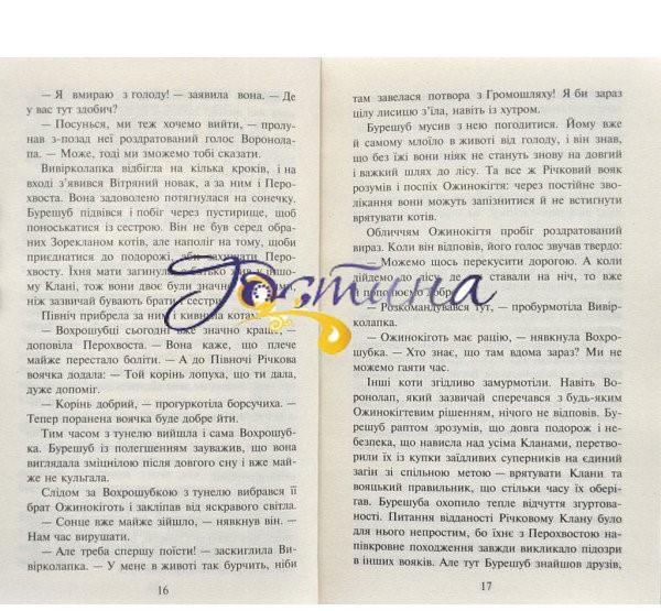 Друга книга другого циклу 'Нове пророцтво' серії світового бестселера «Коти-вояки». Обрані коти мають повернутися до лісу і передати Кланам повідомлення від Півночі. Але чому Зореклан вказав їм найскладніший шлях додому? Навіщо їм чужі проблеми, коли і власних вистачає по самі вуха? На кожне питання є багато відповідей, але треба обрати правильну і при цьому зберегти відданість рідним Кланам, одне одному і зоряним предкам. Світовий бестселер Warriors — понад 30 000 000 проданих примірників! Для дітей та дорослих від 9 до 99 років.