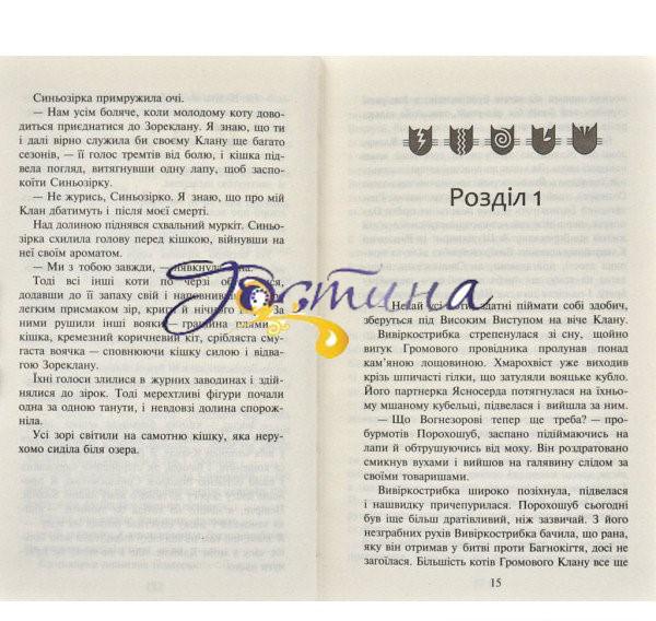 На новій території стежки чотирьох Кланів розійшлися в різні боки. Тепер кожен з них знову сам по собі, як і було з давніх-давен заповідано вояцьким правильником. Проте небезпеки, що чатують у цих незвіданих місцях, можна подолати лише разом. Громові коти завжди готові простягнути лапу допомоги своїм сусідам, та найбільша біда приходить саме до їхнього табору — нещадний ворог, що палає помстою. У ці темні часи вони мусять виявити всю свою силу та мужність, а дехто — зробити нелегкий вибір, від якого залежить доля всього Клану.
