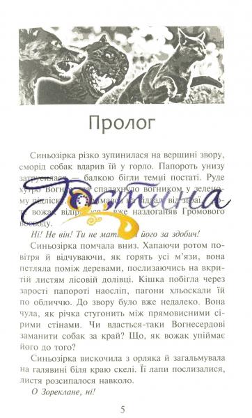 Напруга між Кланами лісових котів зростає. Громові вояки мусять довести свою силу, щоб зберегти територію і здобич від зазіхань зголоднілих сусідів. У ці непрості часи у Клані народжується кішечка Синютка. Зореклан пророчить їй велике майбутнє: вона стане сильною, як вогонь, і проведе Громових котів крізь найтемніші часи. Та перш ніж сповниться пророцтво, Синютка має пройти власний шлях випробувань, сповнений болісних втрат, сумнівів і складних рішень. І навіть коли зрештою засяє велич могутньої провідниці Синьозірки, темні таємниці минулого не залишать її у спокої до останнього дня.