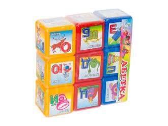 Кубики зроблені з високоякісної пластмаси, наклейки глянцеві паперові. Малюнки на етикетках мають букви українського алфавіту та зображення різних предметів. У наборі: 9 кубиків