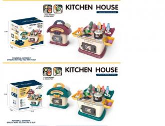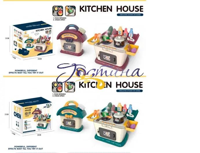 Кухня 917 2в1(будиночок), плита, посуд, продукти, 2кольори, муз., світло, пара,бат.,кор.,28-25-14см.