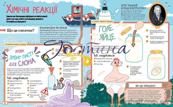 Команда талановитих науковців знайомить читачів із дивовижним світом відкриттів та дослідів. У цій книзі ти знайдеш експерименти, що відкриють цікавий науковий світ у повсякденному житті. Ти зможеш зробити власний компас, стати геологом і вивчати гірські породи, зробити вулкан вдома і спостерігати за дощем у склянці… А ще дізнаєшся багато цікавинок і напевно відкриєш у собі талант ученого.