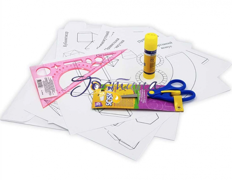 Даний комплект використовується в якості роздаткового матеріалу для проведення лабораторних робіт з геометрії.