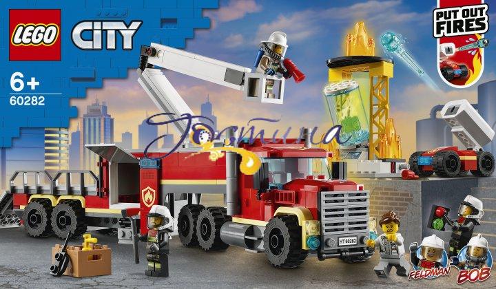 Компанія LEGO представляє вашій увазі цілий пожежний командний пункт в наборі LEGO City 60282. Відчуйте себе професійним вогнеборцям разом з фахівцями своєї справи — цілою командою першокласних пожежників. Тут Боб і Фельдман, а також робот-пожежний Тоасти з серіалу LEGO City Adventures, вони все вам розкажуть і покажуть. Рушайте в саме серце серіалу LEGO City Adventures, де ви будете керувати пожежною машиною, водометом і безстрашно гасити пожежі. Займіть зручне положення на підйомнику пожежної машини і з висоти оцініть серйозність ситуації: можливо, буде необхідно викликати пожежний вертоліт. Поєднуючи набори LEGO City, ви зможете розвивати рольову гру без будь-яких обмежень, придумуючи нові і нові сюжети самостійно і оживляти сюжетні лінії LEGO-серіалу. Конструктор ЛЕГО City Пожежний командний пункт (60282) підходить дітям від 6 років і стане прекрасним подарунком на будь-яке свято, особливо тим, хто мріє стати пожежником. Як же почалася пожежа в цей раз? Дівчина-вчений зовсім випадково розлила каву, що викликало пожежу у лабораторії. Швидше вирушайте туди, допоможіть загасити полум'я і надати допомогу усім, хто знаходиться в лабораторії. Не дозвольте вогню переміститися на велику площу, адже в лабораторії є вогненебезпечні речовини, може статися вибух, покваптеся! Потрібно заряджати водомет і стріляти водою з полум'я. А також евакуювати всіх знаходяться в лабораторії. Давайте розділимо обов'язки і без зволікання приступимо до роботи. Що саме будете робити ви? Рішення потрібно приймати негайно, на рахунку кожна секунда. Допоможіть пожежникам не допустити катастрофу! Що в коробці? 380 деталей, 4 мініфігурка, інструкція по збірці
