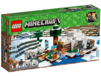 Іглу - конструктор новинка 2018 роки від виробника LEGO Minecraft - реалістична локація, яку можна багаторазово перебудовувати за власним баченням. Деталі легко і міцно з'єднуються один з одним. Набір є поєднується з іншими комплектами даної серії. Герої освоюють нові холодні землі, і знайшли для себе притулок - будинок Іглу. У комплекті є 4 мініфігурки чоловічків, виконаних в піксельному стилі: це білий ведмідь з ведмежам, скелет і Алекс. Частини тіла у фігурок рухливі. Вам потрібно буде разом з Алекс захищати своє житло від волоцюг, а ще добувати рибу в крижаному ополонці!Все необхідне для цього у вас буде. Близько Іглу вночі ви зможете запалити смолоскипи, а для риболовлі передбачена вудка (в скриньці є і сам улов), героїня і скелет озброєні відповідно Діамантове мечем і простим дерев'яним луком. Сходи можна піднімати і знову опускати, а для захисту від ворогів побудувати працюючу пастку, яка може стріляти насправді, варто вам натиснути на спеціальну пластину. Кришка скриньки також легко відкривається і закривається.