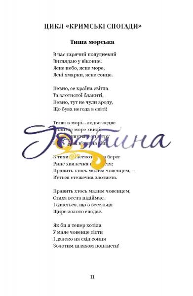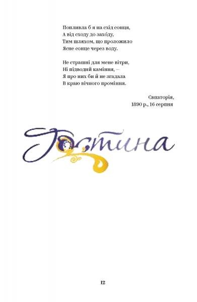У цій збірці ми пропонуємо насолодитися найвідомішими віршами авторки, серед яких «Давня весна», «Хотіла б я піснею стати...», «Як дитиною, бувало...» тощо. Також до вашої уваги драма-феєрія «Лісова пісня», поеми «Одержима», «Кассандра», «Бояриня», «Давня казка».