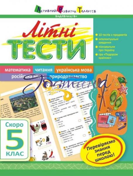 Зошити "Літні тести" допоможуть перевірити готовніть до школи та згадати вивчене у попередньому класі. Зошит включає тести з усіх предметів на певний вік. На додачу: пізнавальна інформація про Україну, інтелектуальні завдання для розвитку кмітливості.А також — настільна гра із картками.;АРТ Карта