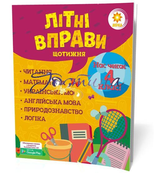 Працюючи із зошитом "Літні вправи", школярі щотижнево повторюють основні предмети 3 класу - читання, математику, укр. мову, англ. мову, природознавство; а також розв'язків язують кросворди, головоломки, ребуси та загадки; розвивають мислення та логіку.