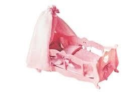 Ліжечко (колиска) для ляльки дерев'яне з постільною білизною та балдахіном 71519