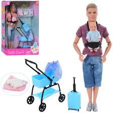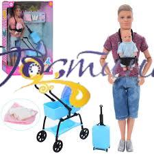 Чудовий ігровий набір для вашої дівчинки.Кен, шарнірний, 30 см, пупс 8 см, коляска, чемодан, аксесуари.