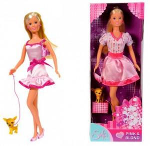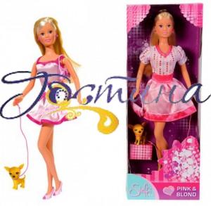 Чарівна Штеффі зі своєю улюбленою собачкою в красивому платті! Лялька стала справжньою гламурної леді у якій є маленька ручна собачка!