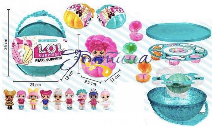 Перлова сумочка Pearl Surprise містить в собі безліч аксесуарів, а також лялечку ЛОЛ.Розкривши велику ракушку, ви отримаєте лялечку невеликого розміру, одягнену в стильний наряд з цікавою зачіскою і виразними очима.Іграшка являє собою сумочку у вигляді кулі, в якому упаковано декілька різнокольорових ракушок. Кожна маленька ракушка містить невеличкий сюрприз у вигляді одягу або взуття для лялечки. Розпакування набору LOL Pearl Surprise одне задоволення, адже ніхто не знає, що його чекає в наступній мушлі.6 шт ЛОЛ черепашок.