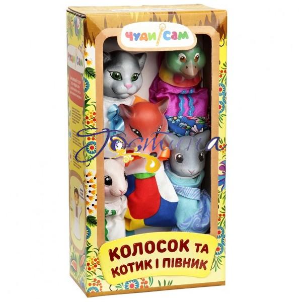 Ляльковий театр Колосок, Котик і Півник (5 персонажів) B165Відмінна якість продукції - кожна одиниця товару промальовується вручну, із застосуванням повної деталізації: волосся, одяг. Рукавичка розміром 30 см. З вшитим усередину голови тканинним напальчником.У набір входить 5 персонажівУпаковка: коробка 33х17х9смВиробник: Чуди Сам (Україна)