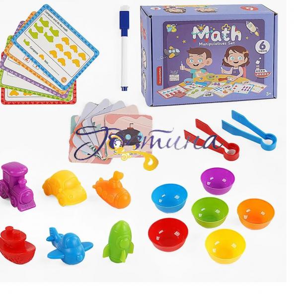 Розвивайте логіку Вашого малюка, просто граючись! Логічна гра передбачає виконання різноманітних завдань, вказаних на картках. Дитина може сортувати фігурки за кольорами та за допомогою щипців складати їх в миску відповідного кольору. Або ж розгадувати логічну загадку та записувати відповідь на картці маркером “пиши-витирай”. Маленькі картки з малюнками та описом дозволяють вивчати транспортні засоби. А гумові фігурки паровозів, човнів, ракет, автівок приємні на дотик і підійдуть для гри вдвох чи втрьох.