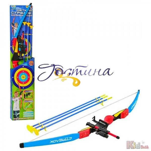 Лук дитячий зі стрілами Влучний стрілець Limo Toy. Код товару: 6903115855012. У комплекті: 3 стріли на присосках, приціл лазер Лук виконаний за подобою справжньої зброї, але абсолютно безпечний для дитячих ігор, т.к. стріли мають наконечники як присоски. Розмір лука: 75х21х7 см У коробці