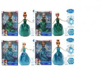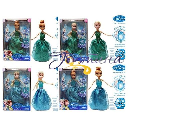 Лялька 611-12-13-15A FR, 28см, муз-звук англ, звуки тварин, світло, регулятор гучності, 2 види по 2 кольори, на бат-ці, в кір-ці. Матеріал: пластмаса + тканина.