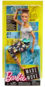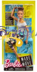 Лялька Барбі готова до складних тренувань: стійка берізкою або розтяжки перед аеробікою! Вона обожнює займатися фітнесом. У неї стильний спортивний топ і модні трико з квітковим принтом. Завдяки своїм 22 суглобам в шиї, плечах, ліктях, зап'ястях, тулубі, стегнах, колінах і ліктях лялька Барбі може рухатися, згинатися, розгинатися, виконувати безліч вправ і позувати. Лялька - з прямими темними волоссям, зібраним у пучок і темним кольором шкіри. Стрункої статури.