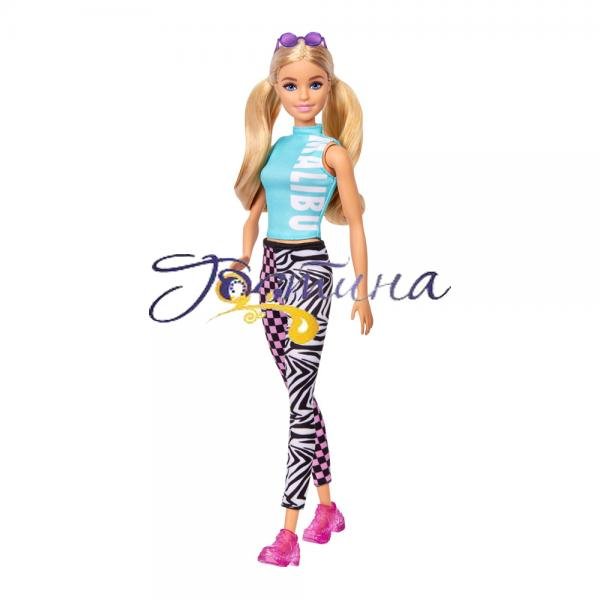 Лялька Barbie Fashionistas блондинка у блакитному топі і леггінсах сподобається маленькій принцесі. Підійде для дитини, яка обожнює стильно вдягатися.