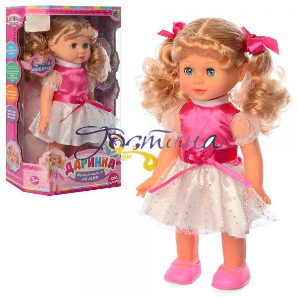 Озвучена українською мовою, святкова, «розумна» лялька співає веселі пісеньки, які Ваша донечка буде з радістю за нею повторювати, розвиваючи комунікативні навички.
