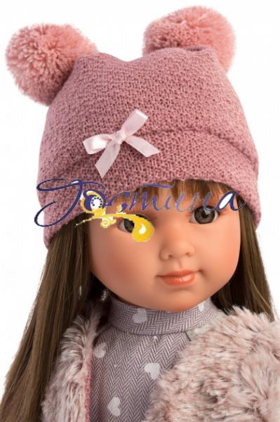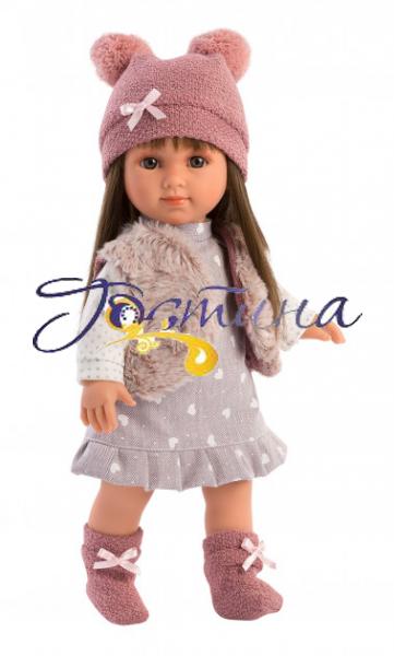 Сара розміром 35 см - робота іспанської марки Llorens, яка докладає всі зусилля, щоб зробити свої іграшки унікальними. Це чудова дівчина, у якої карі очі, довгі вії і красиві каштанове волосся із чубчиком. Сара носить плаття з довгими рукавами з комбінованих матеріалів. Крім того, на ляльці одягнені шаровари, туфлі з бантами, шапка з двома помпонами і хутряний жилет. Її руки, ноги і голова зроблені з приємного вінілу, а живіт заповнений м'якою підкладкою. Лялька впакована в декоративну картонну коробку.