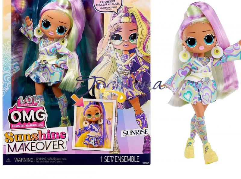 Не забудьте перевірити сюрпризи зміни кольору на її модному одязі, які поступово розкриваються на вулиці. Стильне кімоно та високі шкарпетки Санрайз прикрашені декоративними деталями, які оживають при впливі світла, а її шикарні туфлі різко змінюють колір із жовтого на рожевий. Спостерігайте, як чаклунство відбувається на ваших очах, і дивіться, як колір її волосся змінюється з білого на фіолетовий. Чи можете ви вгадати, на що зміниться колір її зелених та світло-фіолетових відблисків? первісний вигляд, і вийдіть на вулицю або біля вікна, щоб знову випробувати її чудові перетворення.