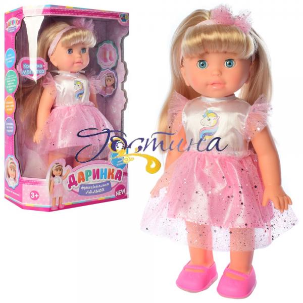 Лялька M 4278 UA Даринка, муз-звук укр, ходить, реагує на бавовну, пісню, загадку, 10 фраз, на бат-ці, в кор-ке. Розмір - 24,5-35-11,5см, Матеріал - пластмаса+тканина, Тип упаковки - Window Box.