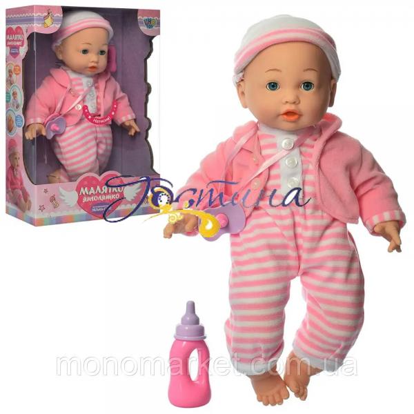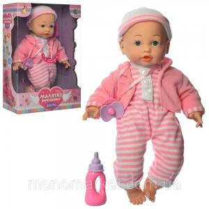 Лялька-пупс м'яконабивна M 3880-1 UA п'є, спить, 40 см, личко з МІМІКОЮ!