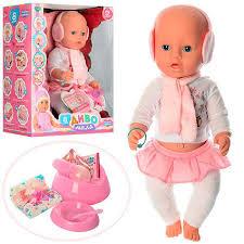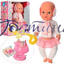 В комплекті: пляшечка для годування, тарілка для каші, ложечка, суміш для приготування каші, пустушка, підгузок, горщик, свідоцтво про народження, браслет на ручку.