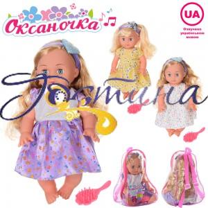 Лялька YL1711K-K-L-M Оксаночка, 33см, гребінець, муз, звук укр, пісня, вірші-лічилки, 3види, бат-таб, в рюкзаку. Матеріал: пластмаса + тканина.