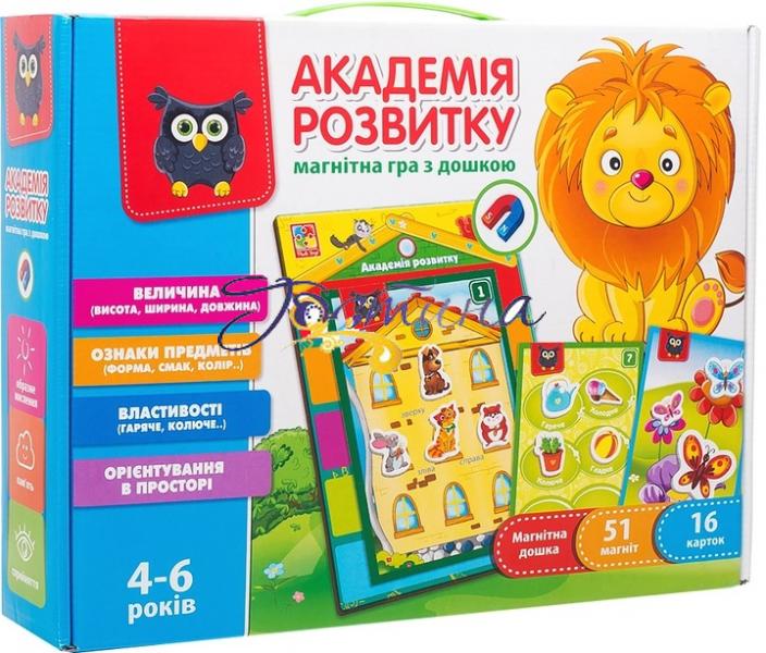 Виконуючи завдання і граючи з магнітами з набору, малюк із легкістю вивчить ознаки та властивості предметів, навчиться добре орієнтуватися в просторі й опанує базові знання про величину. Вигадуйте також свої власні завдання і виконуйте їх на спеціальній дошці!