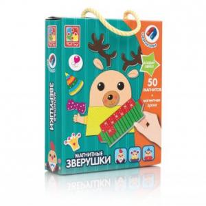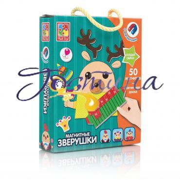 Уважно розгляньте наших звіряток. Для кожного є свій магнітний атрибут! Підберіть правильно деталі і по черзі кріпите їх до фігурки-основи. Наприклад, додаємо зайчику довгі вушка і милу рожеву кофточку.