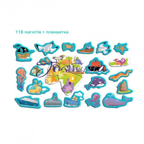Комплектація: 119 магнітних елементів, магнітна дошка.