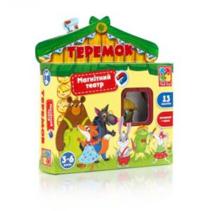 Магнітний театр «Теремок» містить спеціальну декорацію, що перенесе вас у захопливий світ казки. Об’ємні магніти легко кріпляться до холодильника або до спеціальної магнітної дошки. Гра містить також вкладку з оригінальною казкою, але зовсім не обов’язково читати тільки її! Дитяча фантазія не має меж! Створюйте разом з малюком нові історії зі вже знайомими персонажами.