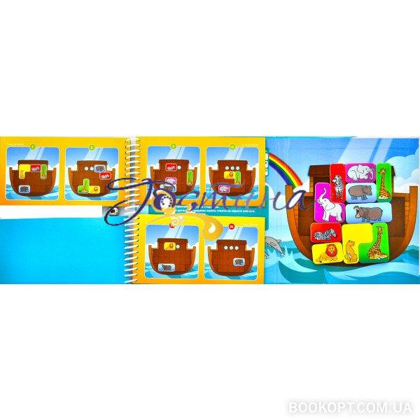 Настільна гра «Ноїв ковчег» підходить для малюків старше п'яти років. Найбільш складні завдання з неї ви зможете вирішувати разом з дитиною. Всього в грі 48 головоломок. Кожна з них знаходиться на окремій картці. У комплект також входять 10 фігурок із зображеннями тварин. Вони кріпляться до карток за допомогою магніту. Пружинна палітурка зручна для перегортання. Картки міцно тримаються на пружині. Суть гри в тому, щоб всі тварини правильно розташовувалися на ігровому полі: вони повинні стояти на землі, не бути перевернутими. В кінці книги можна підглянути правильне рішення головоломок. Вміст: Складене ігрове поле,10 магнітних елементів головоломки,буклет з 48 завданнями і рішеннями. Гра для 1 гравця.