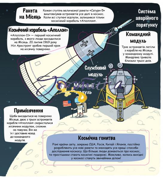 • Довідайся про дивовижні позаземні мандрівки: від польотів на Місяць до стрімкого руху зондів у космічну далечінь.