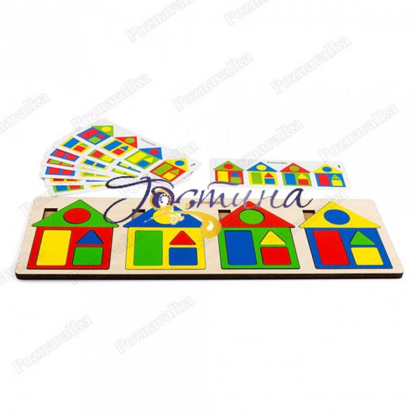 Така гра сприяє швидкому вивченню кольорів і геометричних фігур. Розвиваємо пам'ять, мислення, дрібну моторику.