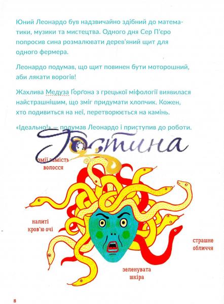 Що зробило генієм Леонардо да Вінчі? Він був художником, винахідником, архітектором, інженером, математиком, скульптором та вченим. Намалював найвідоміші у світі твори мистецтва та здійснив креслення 400 машин, які можна конструювати і сьогодні. А ще винайшов справжній літальний апарат! Його ідеї випереджали світ на сотні років. Відкрийте для себе одного із найяскравіших і найдопитливіших розумників у веселому та барвистому путівнику про його дивовижне життя.