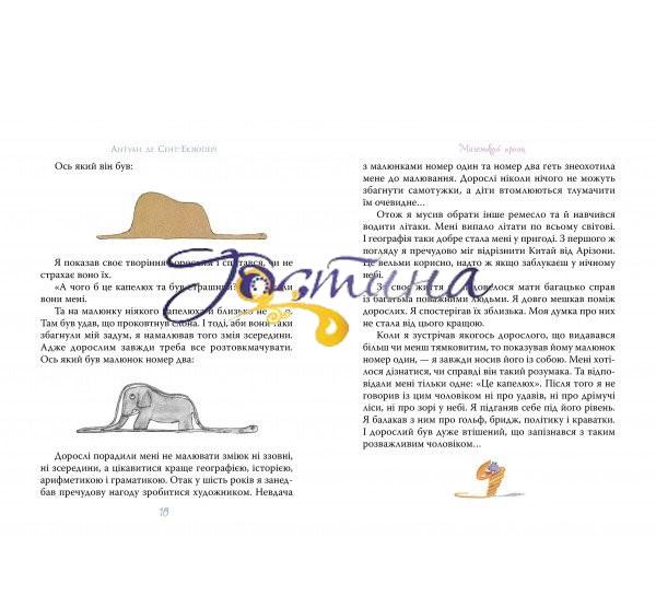 Ця книжка — справжній шедевр видатного французького письменника, поета й мислителя, пілота і вченого, конструктора й винахідника, людини-легенди Антуана де Сент-Екзюпері (1900–1944), якого один із його вчителів назвав «воістину універсальним талантом». Це захоплива лірична повість з цікавим сюжетом для дітей і глибинним філософським змістом для дорослих, бо йдеться в ній про вічні цінності — добро і милосердя, чистоту і безпосередність, зачарований погляд на світ і любов до ближнього. «Добре бачить лише серце. Найголовнішого не побачити очима», — стверджує письменник цю істину своїм останнім закінченим твором, що його він сам просто і вишукано ілюстрував. Чудова книжка — на всі часи.