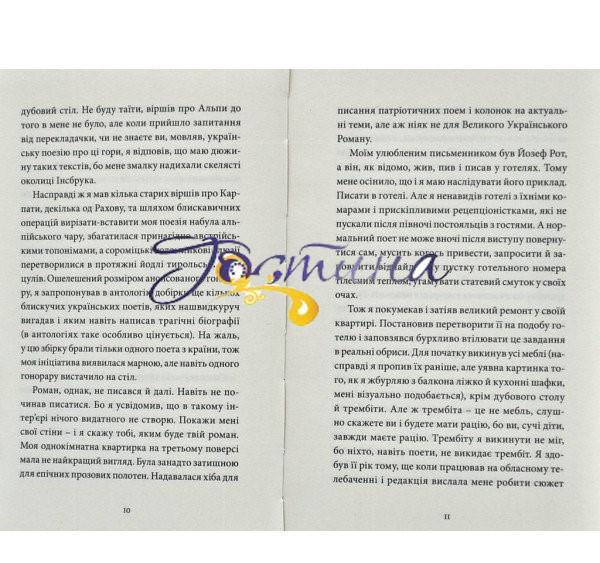Молодий український поет прокидається з бодуна, і його осяює геніальна ідея: треба одружитися, щоб упорядкувати своє життя і завдяки цьому написати Великий Український Роман! Але одружитися з ким? Котру з минулих любовних пригод узяти з собою у світле літературно-сімейне майбутнє? Відповідь на це запитання герою допоможе знайти вірний друг і знаний рибак Паша, а також поліція і група кровожерних гуцулів. Фройд вдоволено потирав би руки, дізнавшись, що в українській літературі нарешті з’явився перший роман про трембіту. Так, поки що малий, але ж розмір – це не головне, правда?