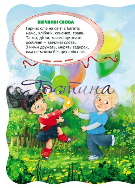 Книжка — про особливі слова, які всім необхідно знати й обов’язково вживати, вітаючись, прощаючись, вибачаючись тощо.Пропонуємо серію книжок «Малятко-розумнятко». Найцікавіші вірші від кращих дитячих поетів розкривають найпотрібніші та найкорисніші теми для розвитку маленької дитини. Добру поезію доповнюють дотепні та яскраві малюнки від кращих художників-ілюстраторів. Хвиляста форма книжки активізує тактильну діяльність дитини, стимулюючи її загальний розвиток.Книжки схвалені педагогами та психологами та відповідають санітарним нормам.Для читання дорослими дітям.