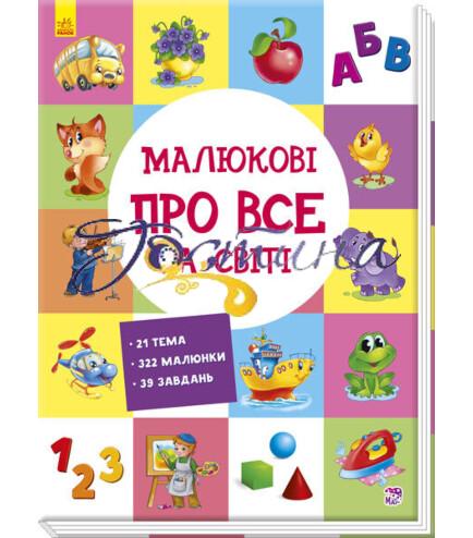 У нашій великій енциклопедії допитливий малюк знайде 39 цікавих завдань до розвивальних тем: - Абетка, - Лічба, - Кольори, - Фігури і форми, - Оріентіруемось у просторі, - Моє обличчя і моє тіло, - Мій одяг, - Пори року, - Погода, - Протилежності, - Тварини, - Свійські тварини, - Комахи, - Овочі, - Фрукти та ягоди, - Машини, - Професії, - Мій день, - Що із чого? - Хто де живе? - Хто як росте? - та інше.