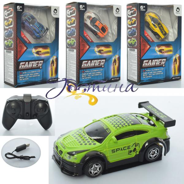 Машина 777-617 на радіоуправлінні, акумулятор, їздить по стінах, 7 см, світиться, 4 види, в коробці. Розмір - 14-20-6 см, Матеріал - пластмаса, Тип упаковки - Window Box.