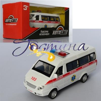 Машина металева AS-2489 АвтоСвіт, Швидка допомога, 15 см, звук і світло, в коробці 20,5*10*8 см