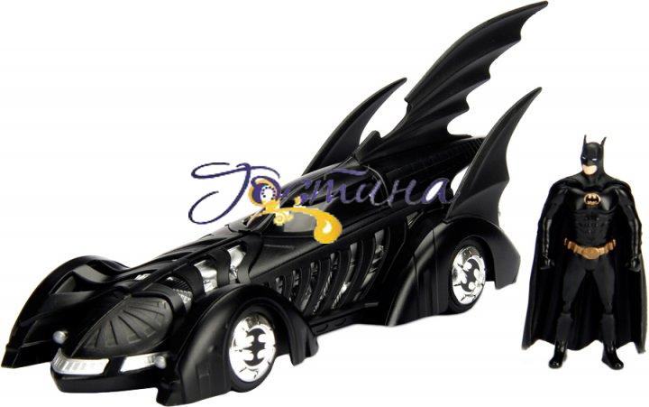 Компанія Jada представляє ліцензійний автомобіль Бетмобіль (1995), який повністю повторює дизайн справжнього повнорозмірного авто. Він був сконструйований в оригінальному дизайні, наближеному до вигляду кажана спеціально для фільму «Бетмен назавжди» 1995 року.орпус машини виготовлений за технологією Die-Cast (лиття під тиском). Має ретельну деталізацію всіх елементів і частини, що відкриваються — дверцята. Механізм вільного колеса забезпечує плавний рух автомобіля. У наборі ви знайдете унікальну металеву фігурку Бетмена, який одягнений у маску та довгий плащ, що виготовлені також за технологією Die-Cast. Бетмобіль стане прекрасним доповнення колекції автолюбителів і шанувальників фільму.