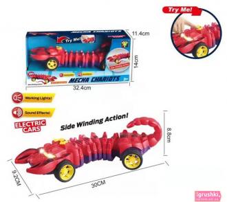 - машинка оснащена двома функціональними кнопками, які активують: мерехтливе підсвічування очей, футуристичні звуки та автоматичні хвилеподібні рухи;