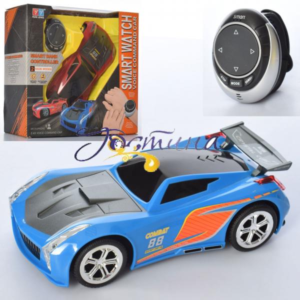 Машина R-501-2-11 на радіокеруванні-браслет, 19см, світло, гум.колеса, 2кольори, на бат-ці, в кор-ці. Розмір - 26-22,5-8,5 см, Матеріал - пластик, Тип упаковки - Window Box.