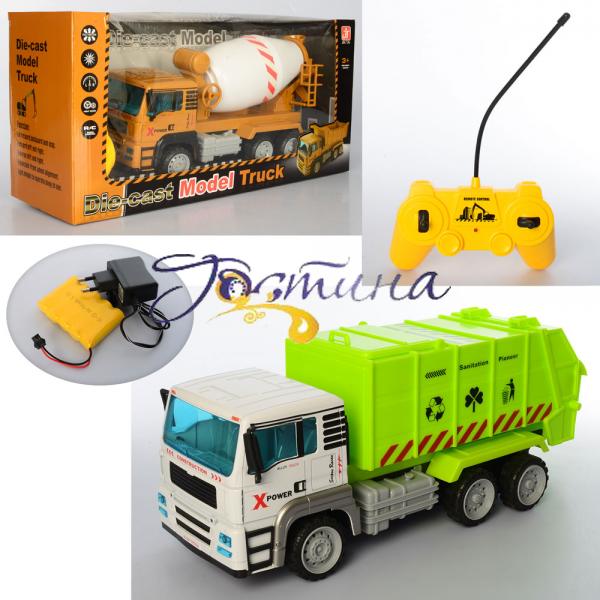 Машина TR678-182-3 на радіоуправлінні, акумулятор, метал, масштаб 1:12, 40 см, світиться, 2 в 1, бетономішалка / сміттєвоз, в коробці. Розмір - 51-24-16 см, Матеріал - метал + пластмаса, Тип упаковки - Window Box.