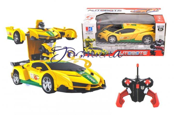 Яскрава пластикова машина-трансформер, яка їздить на радіокеруванні (вправо, вліво, вперед, назад). Машинка легко трансформується в потужного робота. Має підсвітку. В комплекті: пульт управління, батареї, USB кабель.