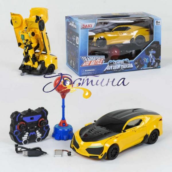 Трансформуватися з робота в машину і назад прямо з пульта управління. Головна особливість – у формі робота махає кулаками, як справжній боксер. Можна влаштовувати справжні бійки між двома роботами або просто відточувати свої навички на імпровізованій груші. Цікавий та яскравий дизайн приверне увагу найменших любителів машинок. Стане чудовим подарунком для дітей. Від 4-х років. Зможуть грати у компанії з друзями вдома та на вулиці. Колір жовтий Тип електроенергії: Акумулятор (3,7V), батарейки (АА) Кількість ел-тів харчування: 1 Елементи живлення батарейки АА в комплекті: Ні Вес в упаковці: 1365 р Габарити в упаковці: 31,5 x 39 x 19 см Країна виробник: Китай Матеріал: Пластик Комплектація: Трансформер, пульт, груша, заряджання, аккумулятор